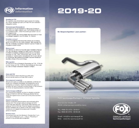 products is only possible after arrangement. Web: www.fox-sportauspuff.de